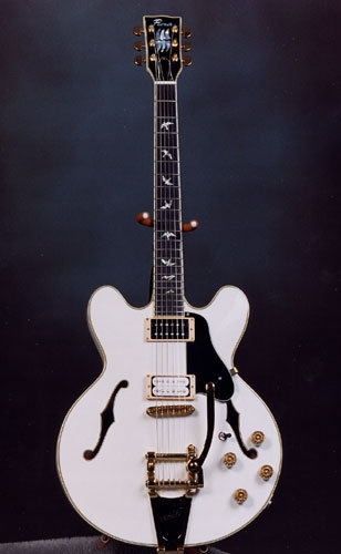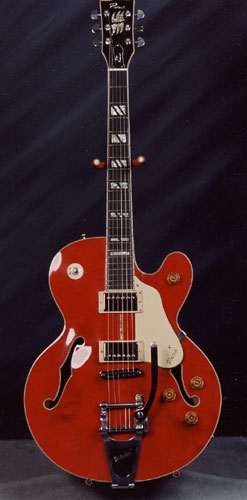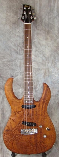 Darrell builds all types of custom electric guitars: solid body, semi-hollow body, chambered solid body, or whatever you can dream up. When building a custom electric guitar, Darrell gives the customer a choice of hardware, pick-ups and design options. Darrell is also very popular for his custom inlay work. Using mother-of-pearl or abalone, he can inlay most any shape or design in any part of the guitar.